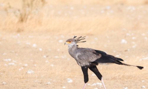 Der laut IUCN stark gefährdete Sekretär sieht immer wahnsinnig beschäftigt aus. Er kann zwar fliegen, geht aber lieber zu Fuss – etwa 20 bis 30 km pr…