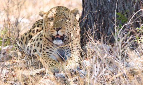 Leoparden sind bekannt dafür, auf Bäume zu klettern. Die meiste Zeit verbringen sie aber auf dem Boden – am liebsten an einem schattigen Plätzchen.